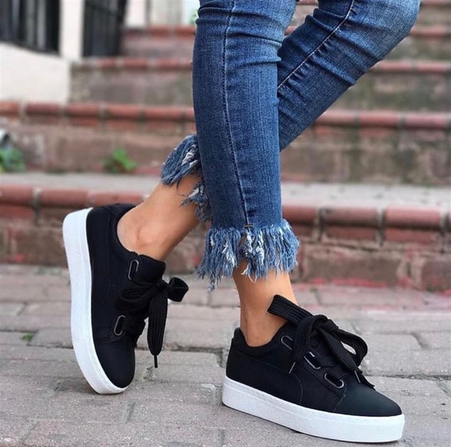 Spor Ayakkabı (Bingo) Siyah Süet Kadın Sneakers (ERV1007SİYAHS)