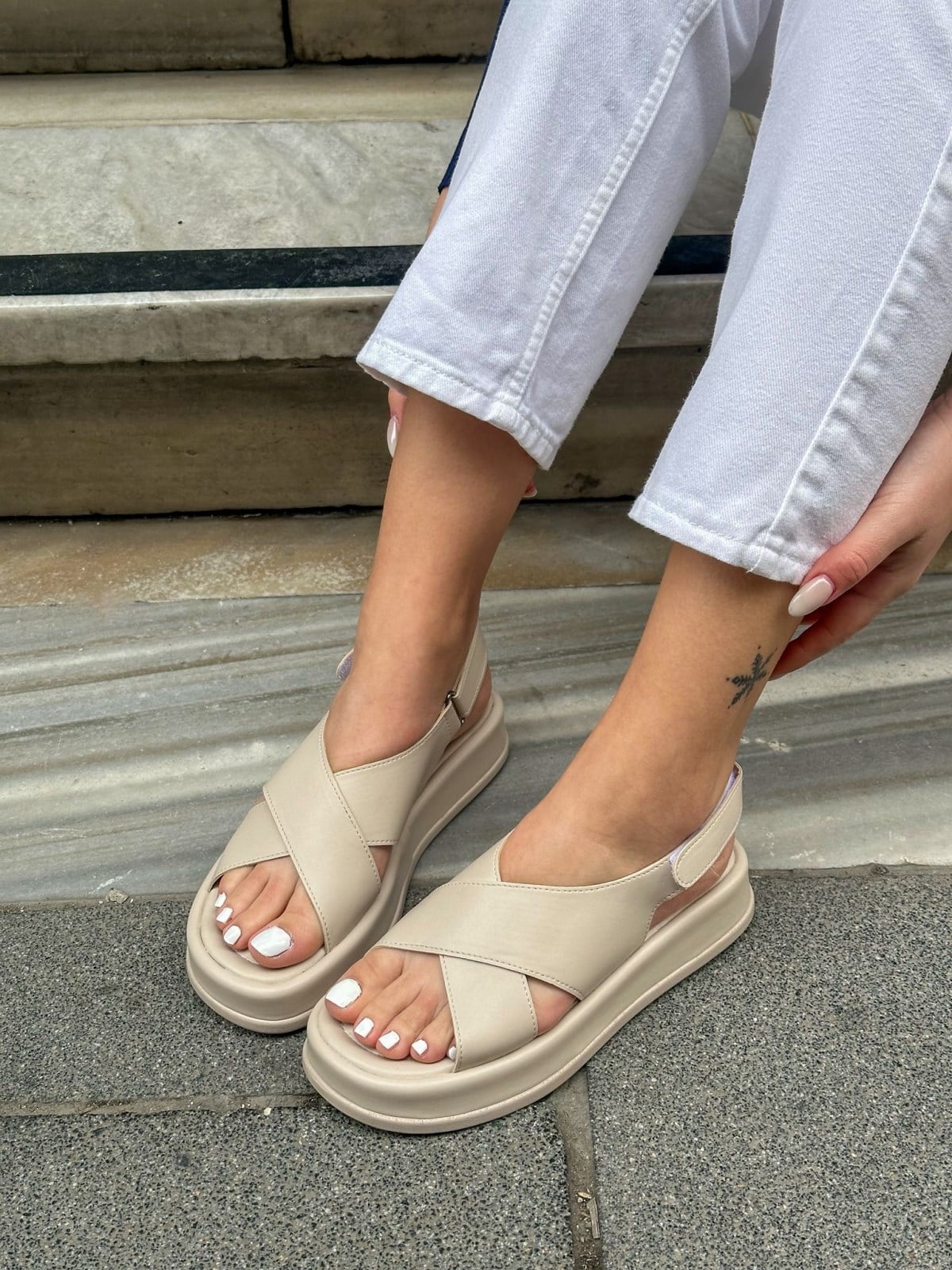 Bej Cilt (Beangle) Bant Detay Kadın Sandalet