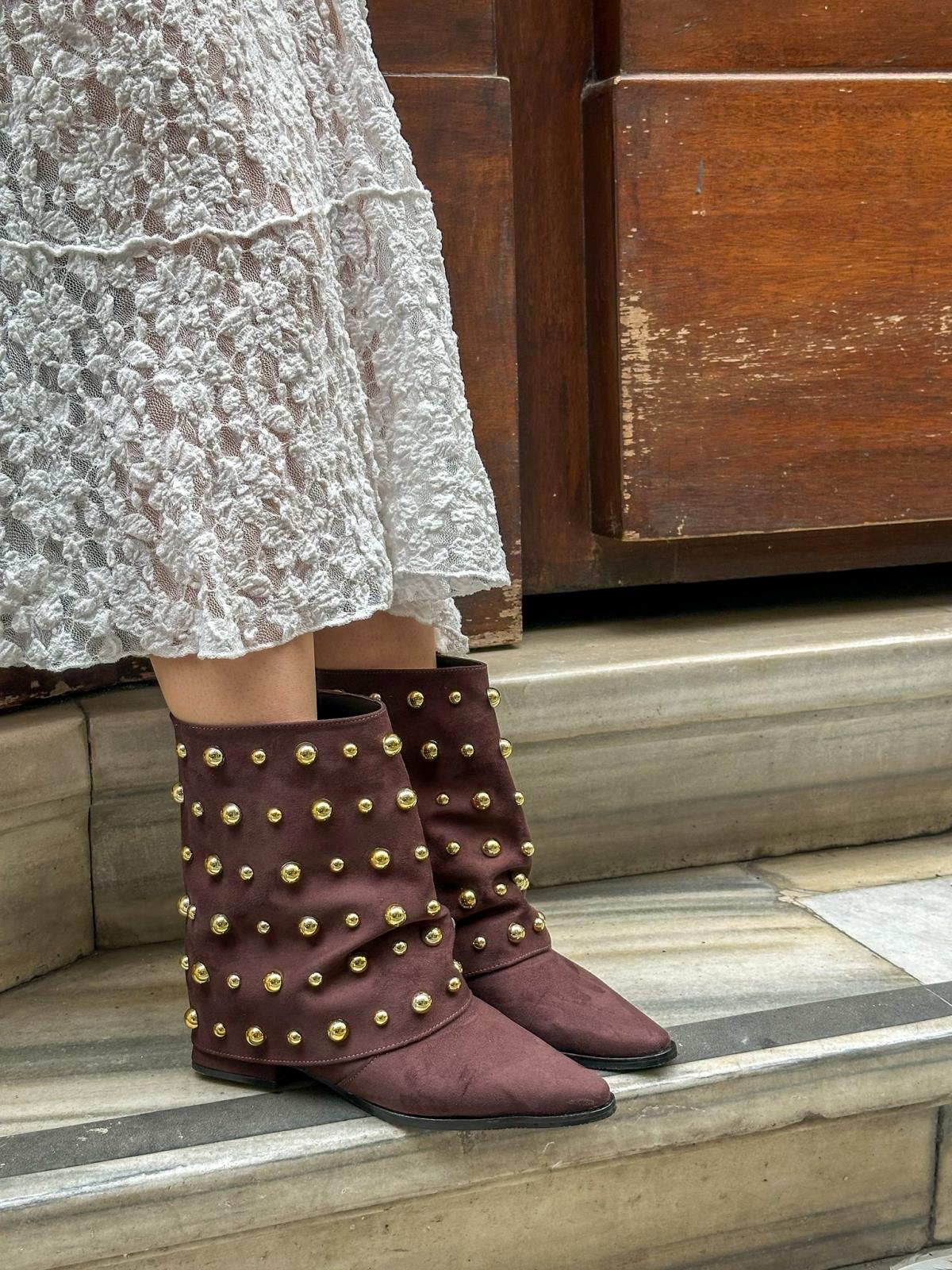 Kahve Süet (Rucci) Trok Detay Kadın Çizme