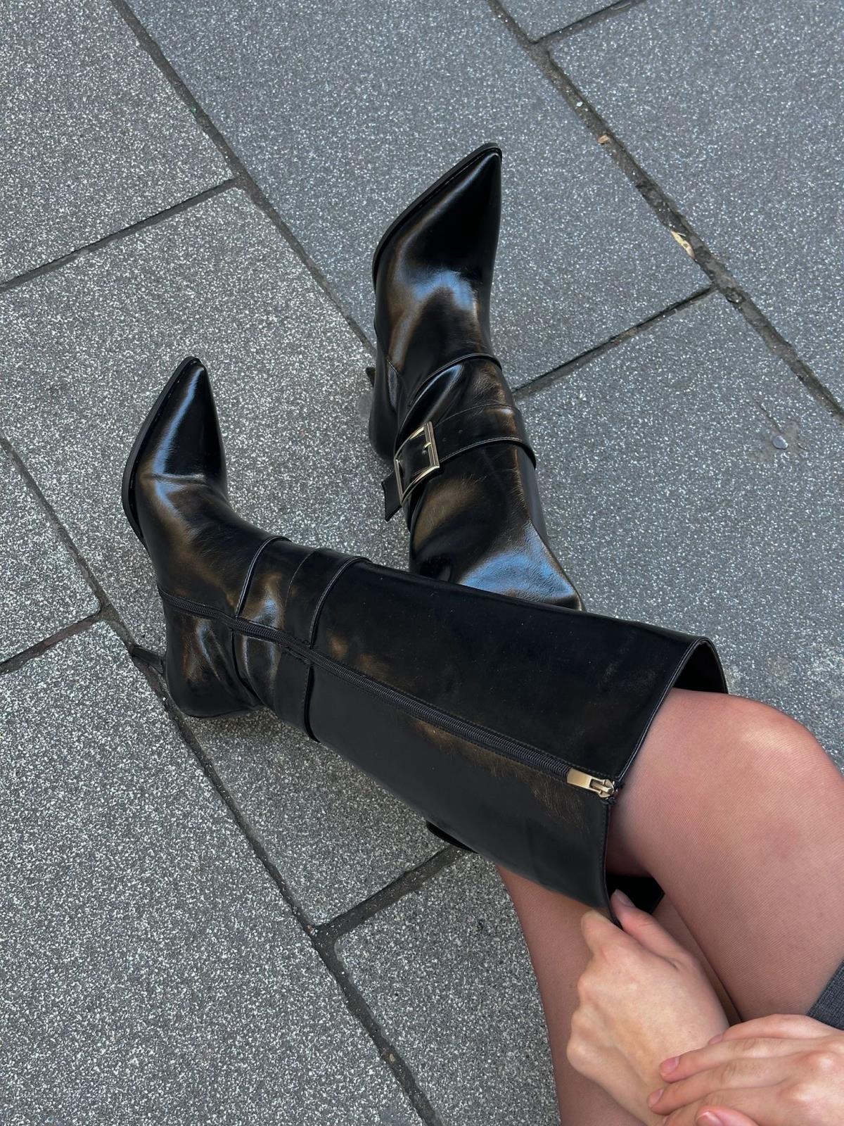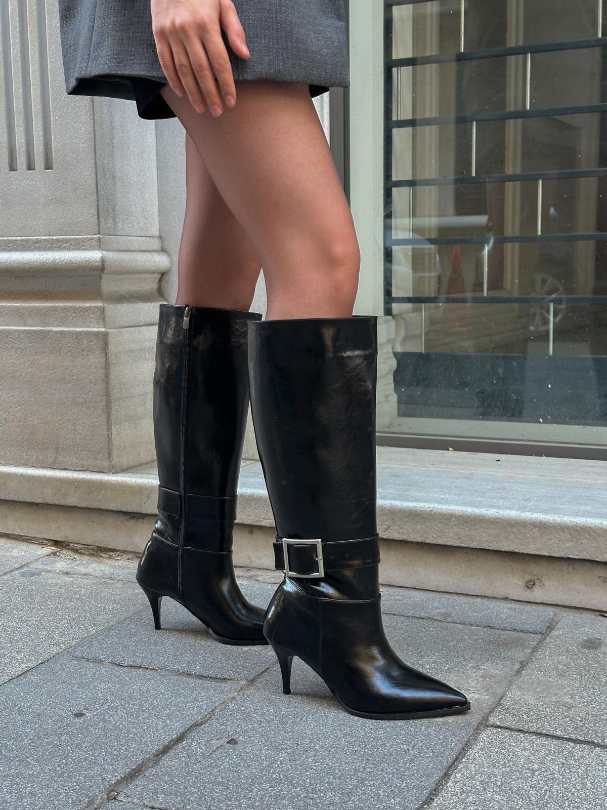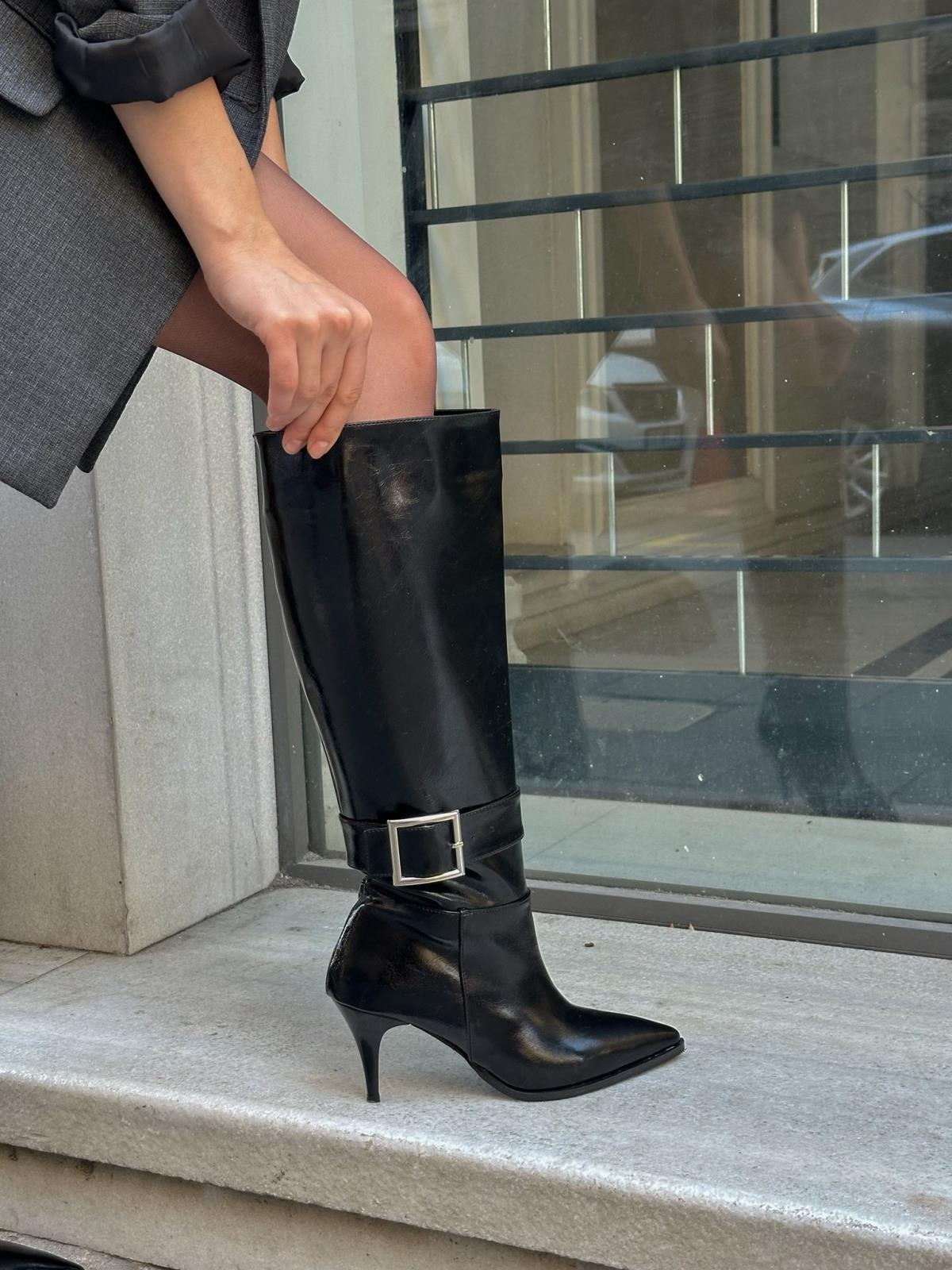 Siyah (Lavinia) Gümüş Toka Detay Kadın Topuklu Çizme