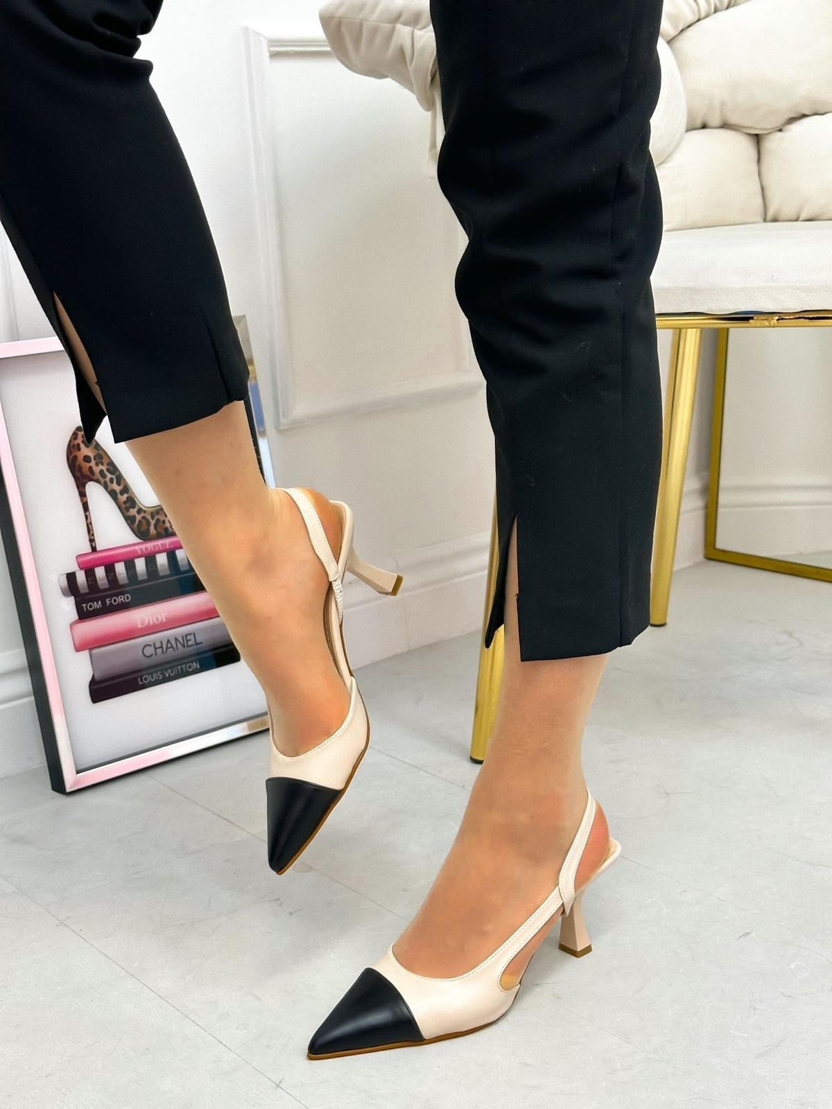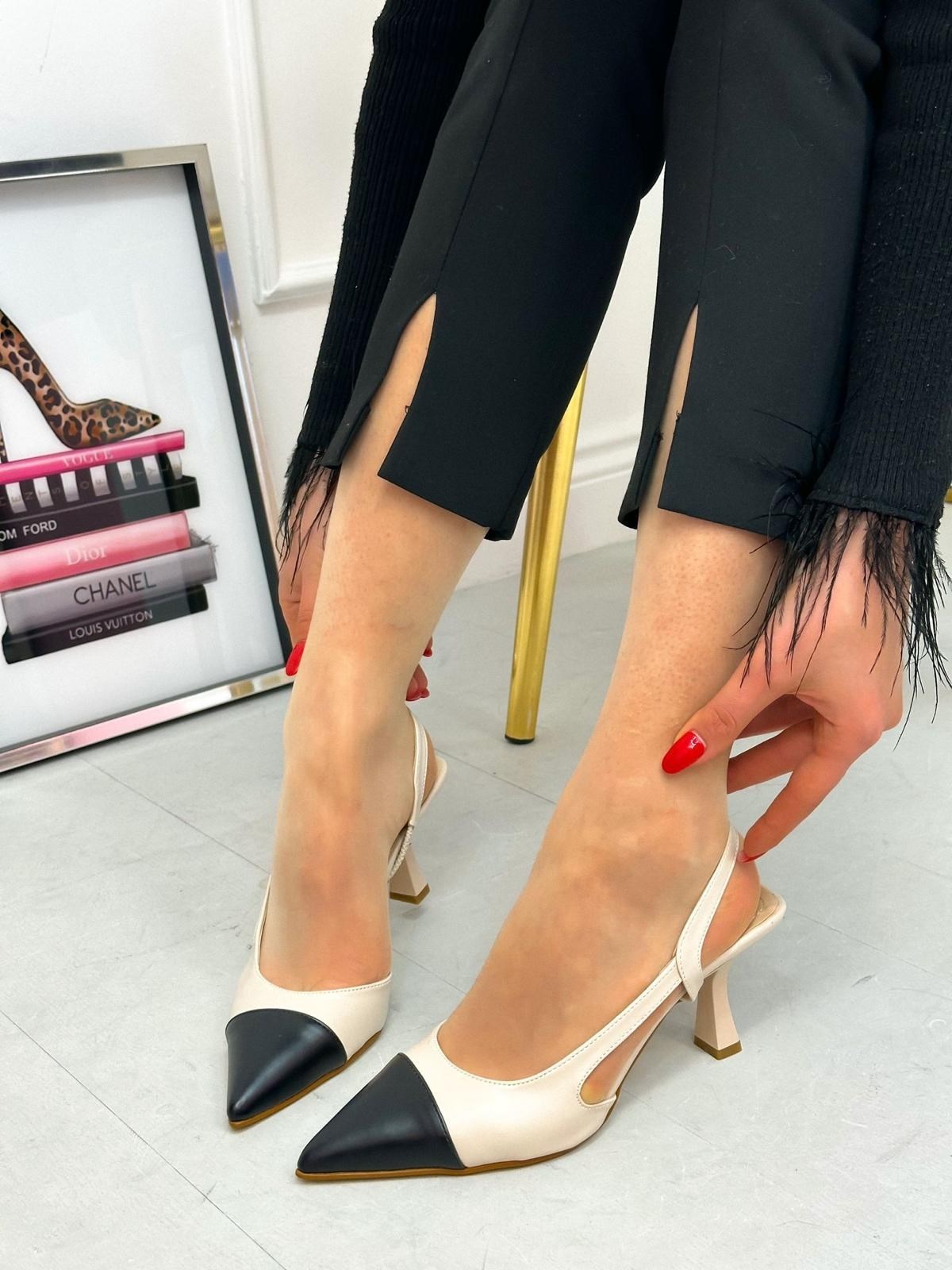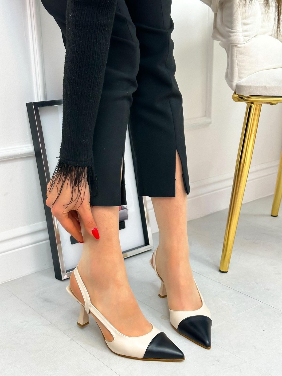 Bej Siyah Deri (Jake) Maskelet Detay Kadın Açık Stiletto